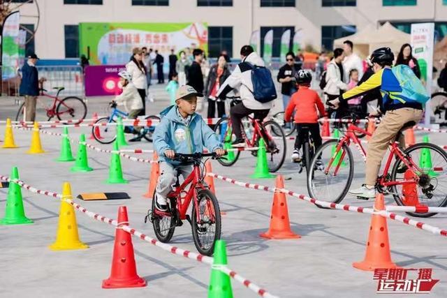 上午 9 时,随着 120 吨巨型塔吊旁的舞台上宣布整个活动启动后,亲子家庭依次散开有序出发。在倡导家庭体育教育、运动普及的大背景下,本次活动特别强调了家庭集体参与运动的理念。设置的九个打卡点,特色小游戏掀起参与热潮:“小马过河” 游戏区里,家长和孩子踩着瑜伽砖跨越斑驳历史印记的 “河流”, “单车发电”最具科技感,孩子们骑行时给赛道充能,小汽车飞快奔走在跑到上。“爱拼才会赢” 环节,亲子家庭合力拼接气模道具,仿佛在拼接整个复兴岛的未来蓝图;“障碍骑行” 赛道,既考验大家的平衡能力又能在你追我赶中感受深秋的快乐;“眼疾手快” 游戏中,参与者需快速抓取随机掉落的棍子,随着一个个精彩的抓取,现场不时响起阵阵欢呼……