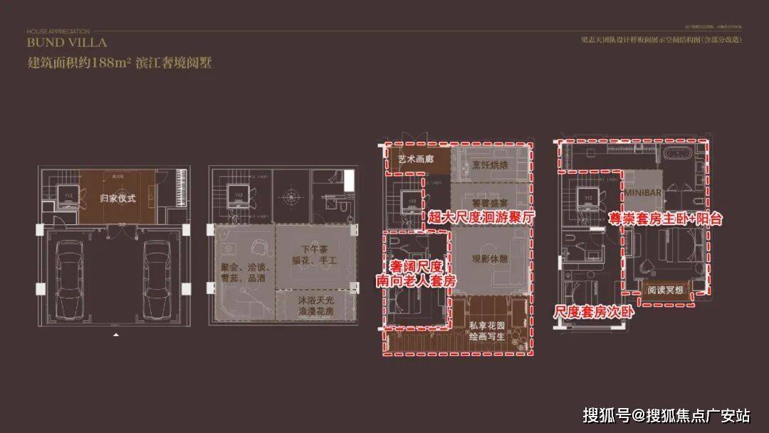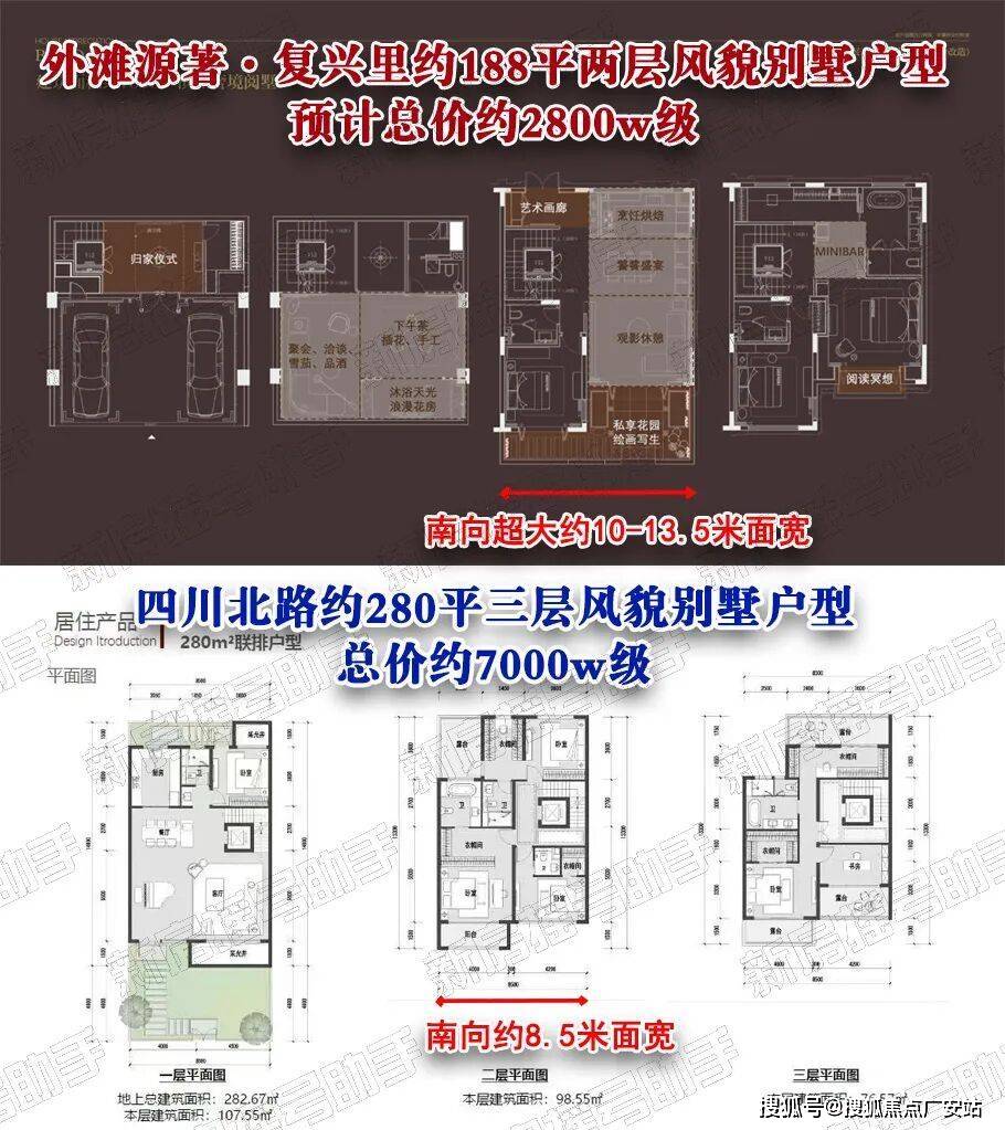 更以南向面宽约10-13.5米奢阔开间,呈现出大面宽、短进深的别墅户型,超越市面上约7000w级风貌别墅面宽。