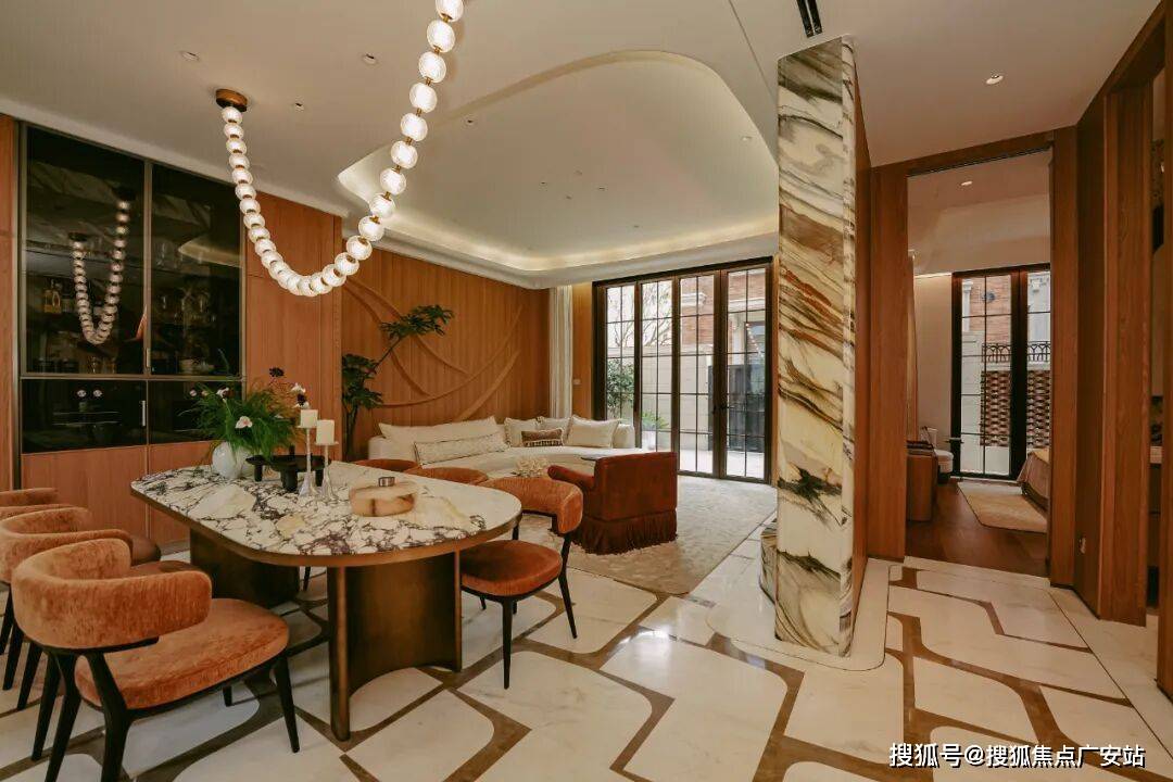 超尺度“洄游聚厅”打破传统壁垒,以餐客厨一体化方厅重构家庭社交中心。南向巨幅落地窗引景入室,无论是三代同堂的温馨飨宴,抑或名流雅士的私密沙龙,皆可从容铺展气度。