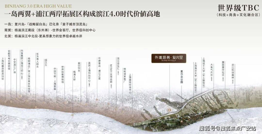 对标徐汇滨江,杨浦规划“一带两区”高端商务载体,复兴岛升级为“数字岛、设计岛、人民岛”,根据杨浦“一岛两翼”规划定位复兴岛“顶流岛”位置,近期地段活力价值不断叠加: